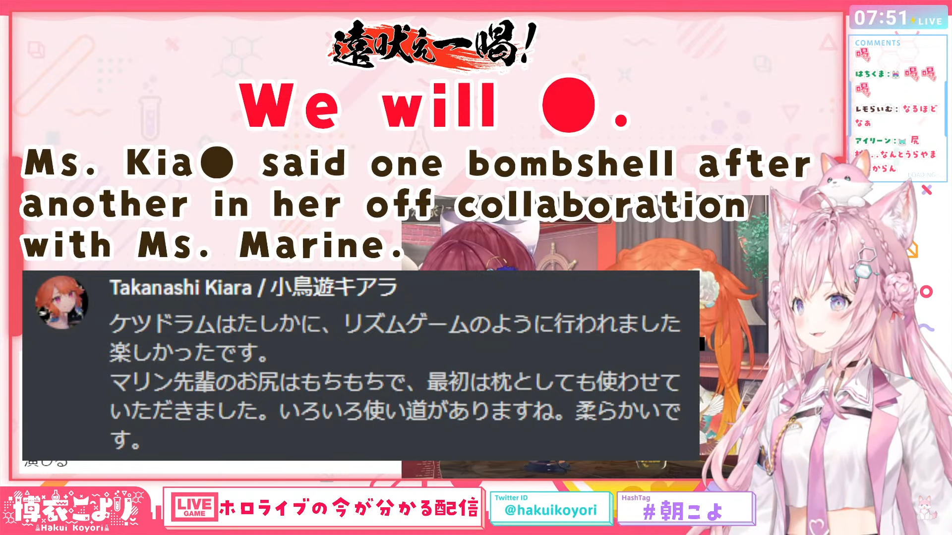 管理人:一部界隈において、「スバルのケツは柔らかいが船長のケツは固い」という風説が流布されていたのですが、今回の記事によりそういった誤情報が一掃されることを願います。