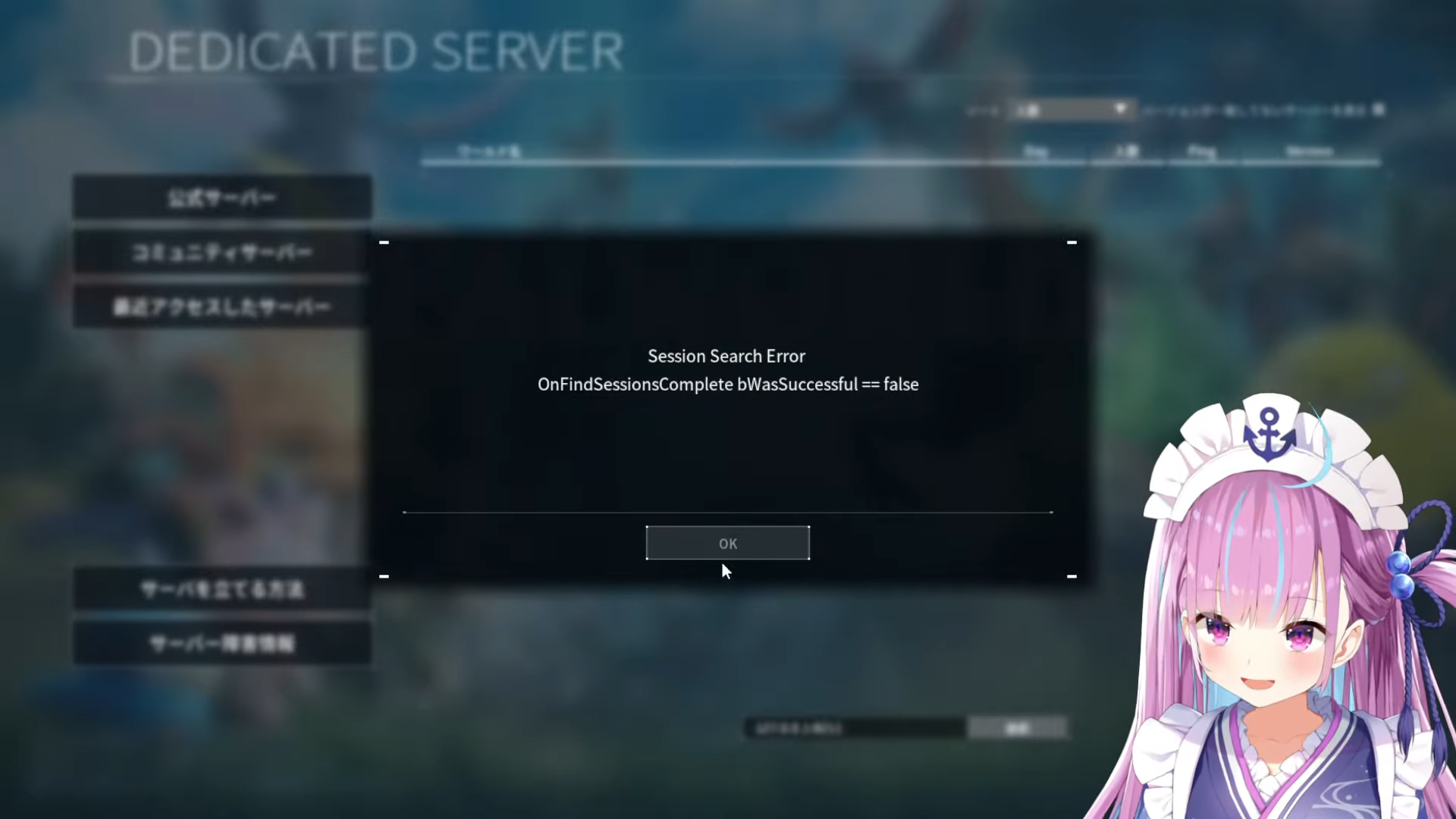 入り口のキャラログインはパルワ公式鯖なので、そこが壊れてしまった