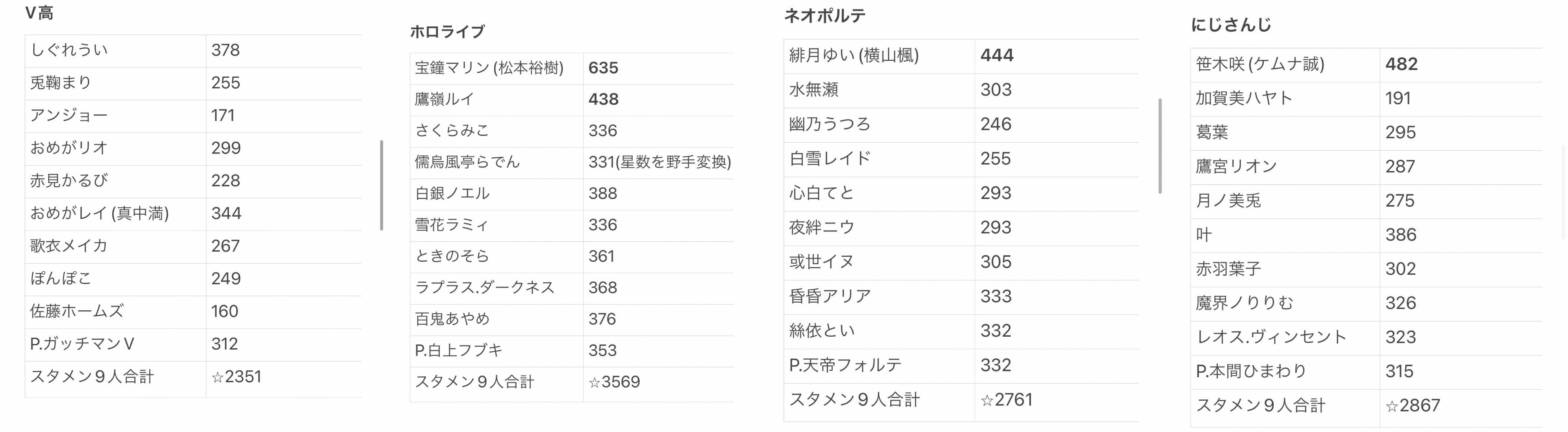 ホロライブ高>>>>ネオポルテ高>>にじさんじ高>Vtuber高
