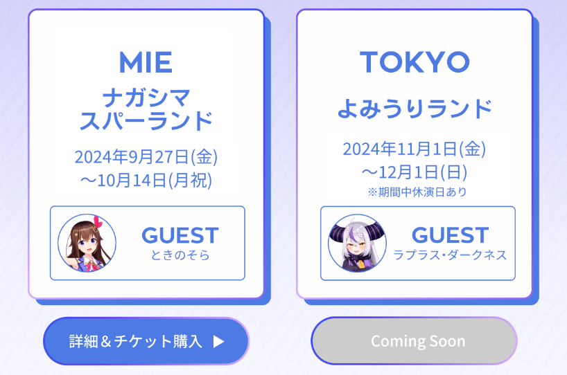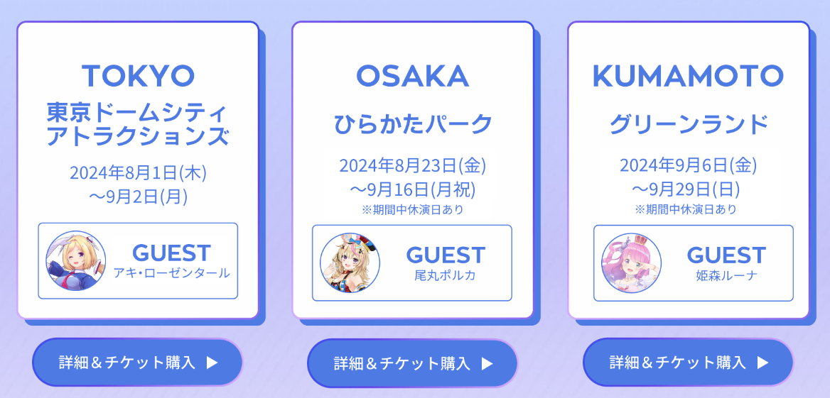 なおホロライブシティ開催テーマパークの内、八木山ベニーランドでは実施されない模様です。