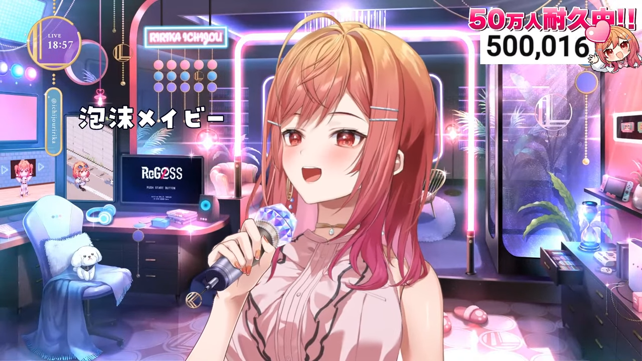 50万人達成後も歌枠は3時間ほど続き、登録者は50万1300人ほどまで増加しました。