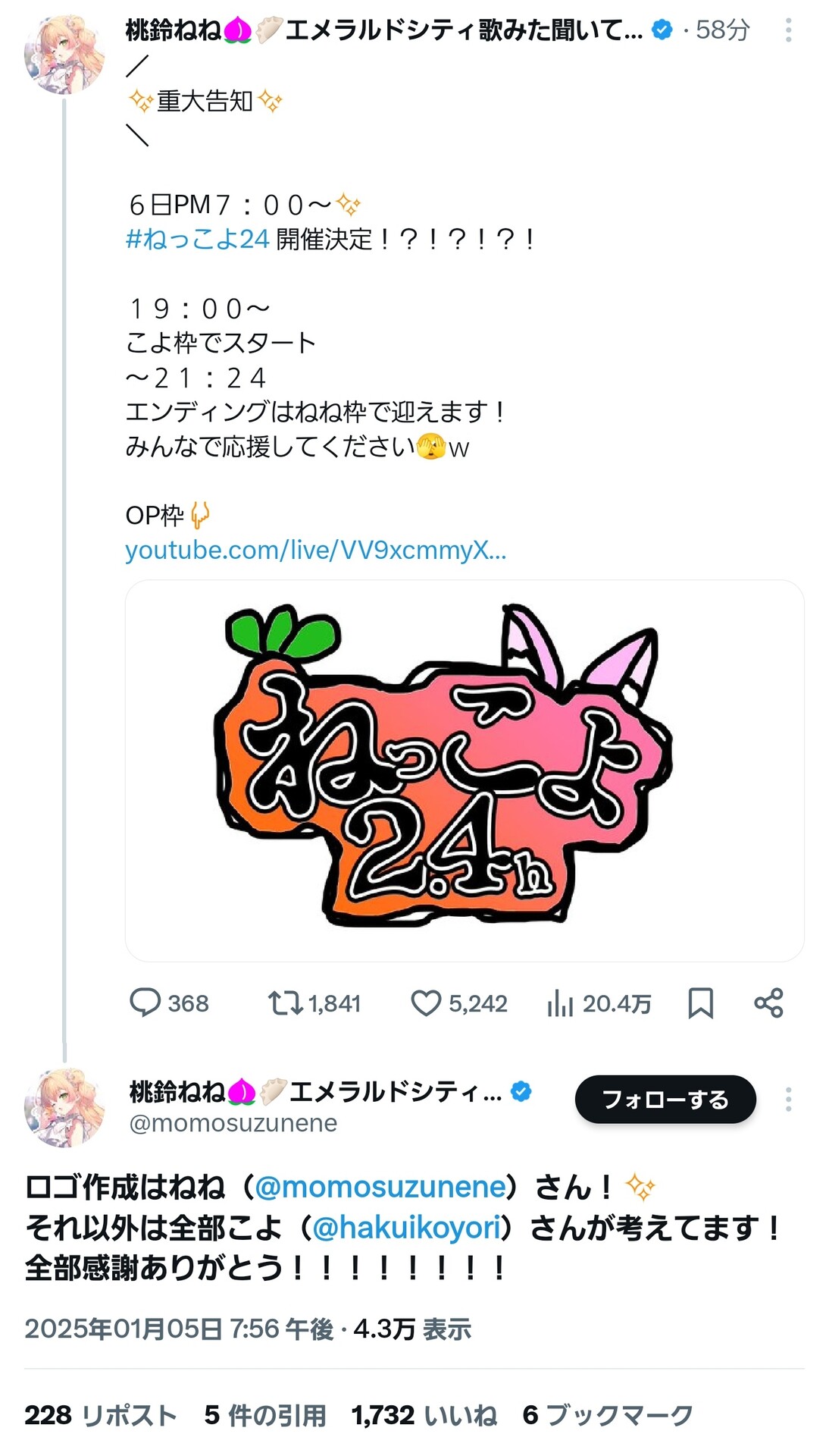 🍑「ねねたちも2...4ではあるんだが!」