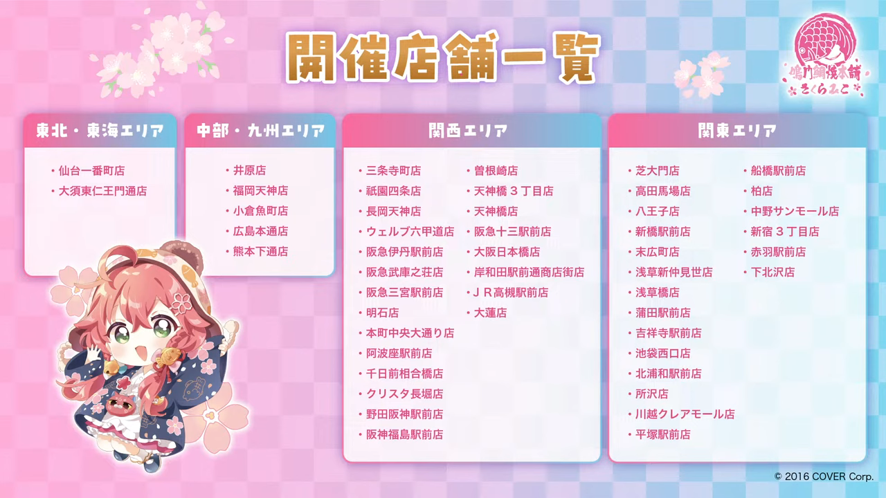 ※千日前相合橋店、明石店、下北沢店、所沢店については等身大パネルの設置はございませんのでご了承ください。