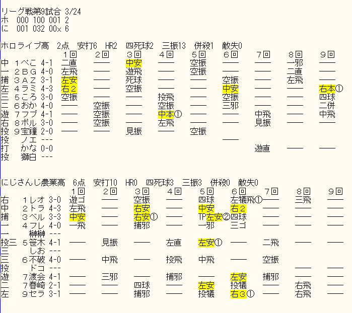 八百屋マジで打たないから下位に下げるか最悪かなたそと入れ替えたほうが良いかもしれん