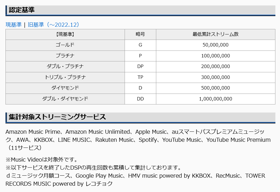 集計対象に「Youtube Music(Premium)」はありますが「Youtube」は無いので、YoutubeのMV(現在1億3000万再生)も足すと最低でも2億3000万回は再生されてるかも。