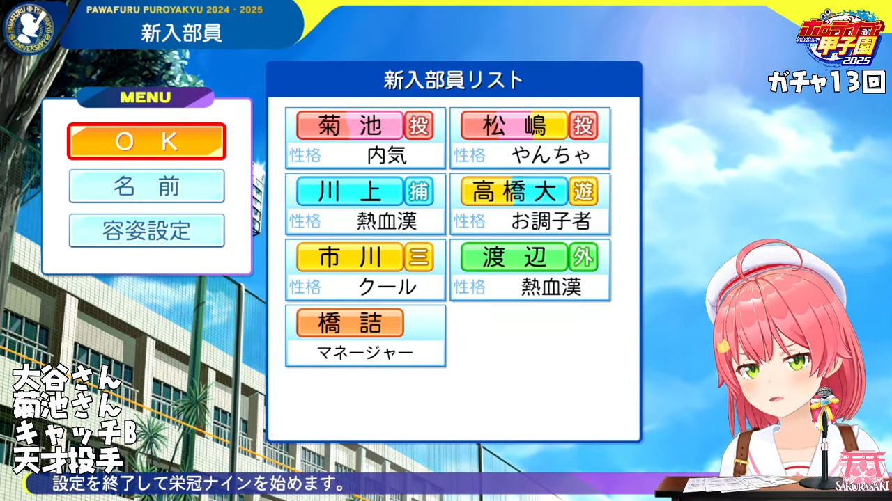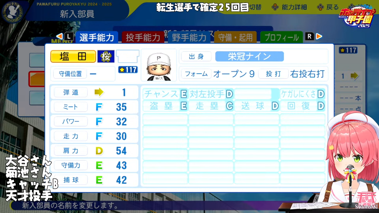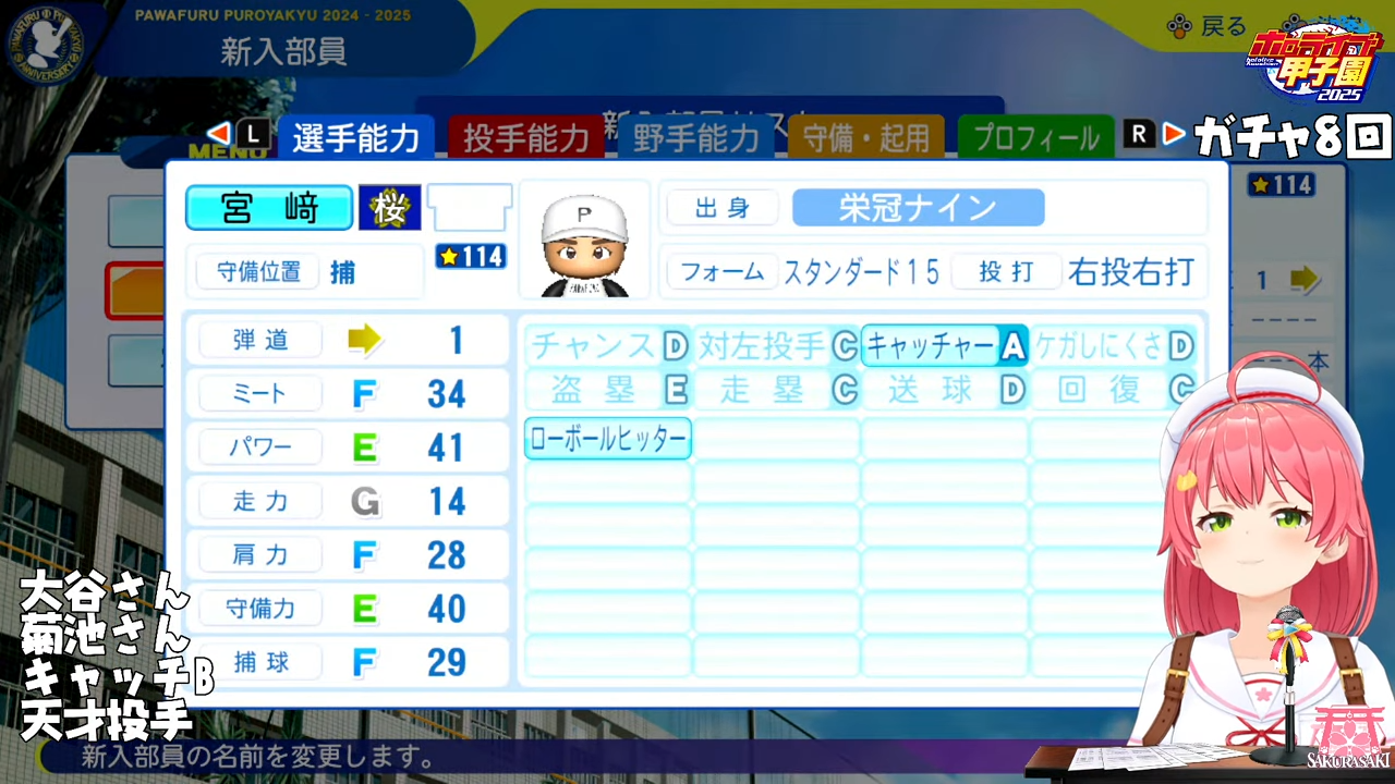 大里はまだましちゃうかキャFの石塚が捕手枠できたらかなりきつそう25Verのステしらんからアレやけど