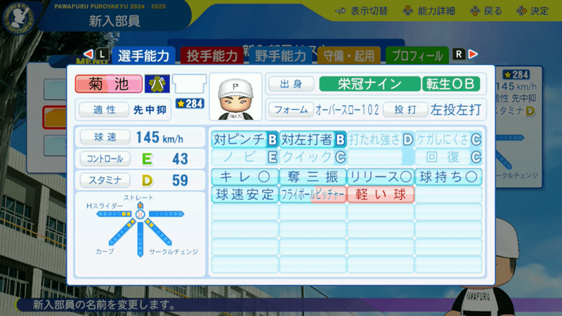 普通にやると栄冠において投手性能は菊池の方が優秀です