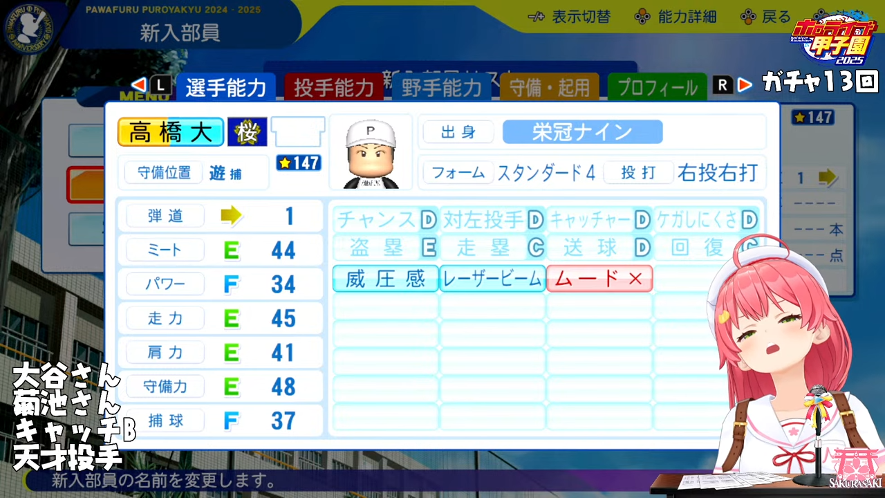 初期メンバーも星は高めだけど肩とか守備で盛っててミートは全員Fだったり