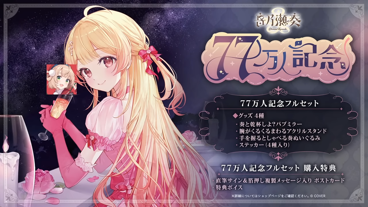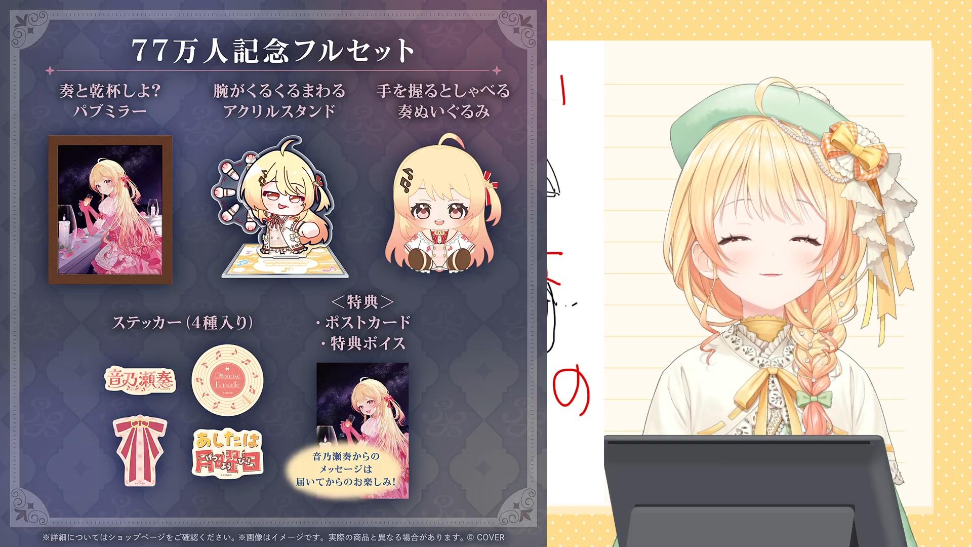 「音乃瀬奏 77万人記念グッズ」販売開始🎉