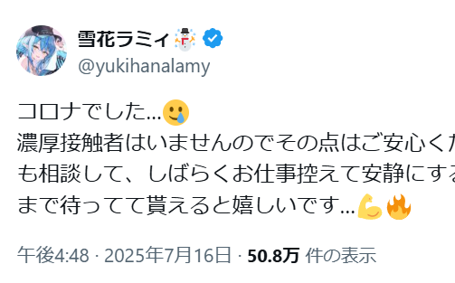 【ホロライブ】ラミィちゃん、コロナ感染でダウン…しばらく配信お休みに